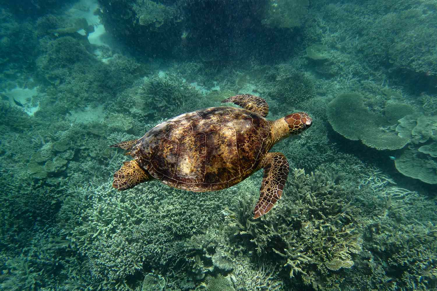 As I turned to leave I noticed a sea turtle resting against the corals. Such shy wonder: the Great Barrier Reef is majestic on even its tiniest scale. Each coral is a minuscule animal—only when millions of them come together do they make a reef. Now, with their survival threatened, we must come together to help them. I remembered Dr. Bay’s quiet intensity when I asked how she felt about our chances of saving corals. “I think we’ve just got to give it all we have,” she’d replied.