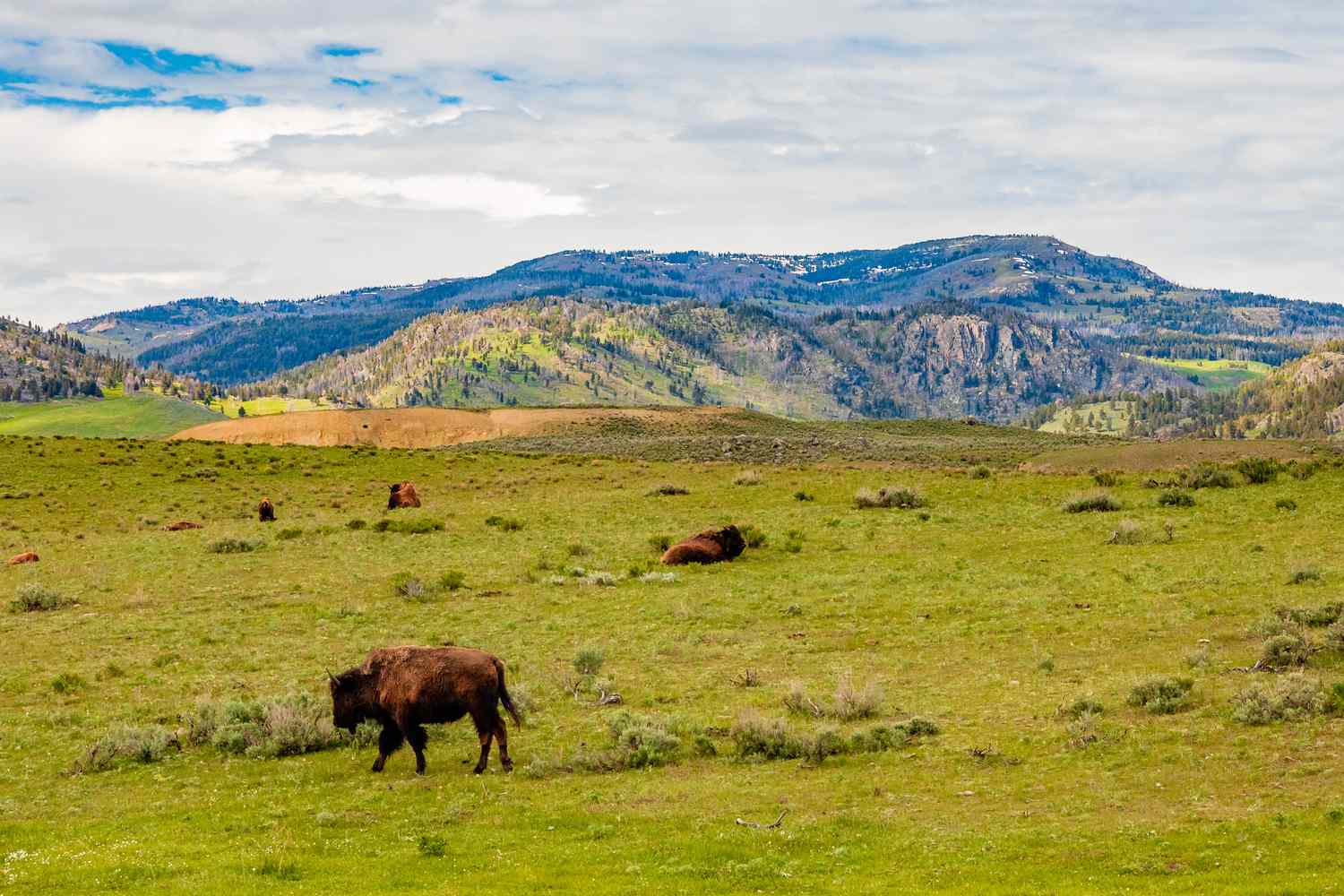 Diehl recommends an early start to your day if you’re visiting Yellowstone. “Start early, as the best wildlife viewing happens at dawn—followed by viewing at dusk—especially for the resident apex predators and bison,” Diehl says. “Plan to reach Hayden Valley around sunrise for peak activity.”