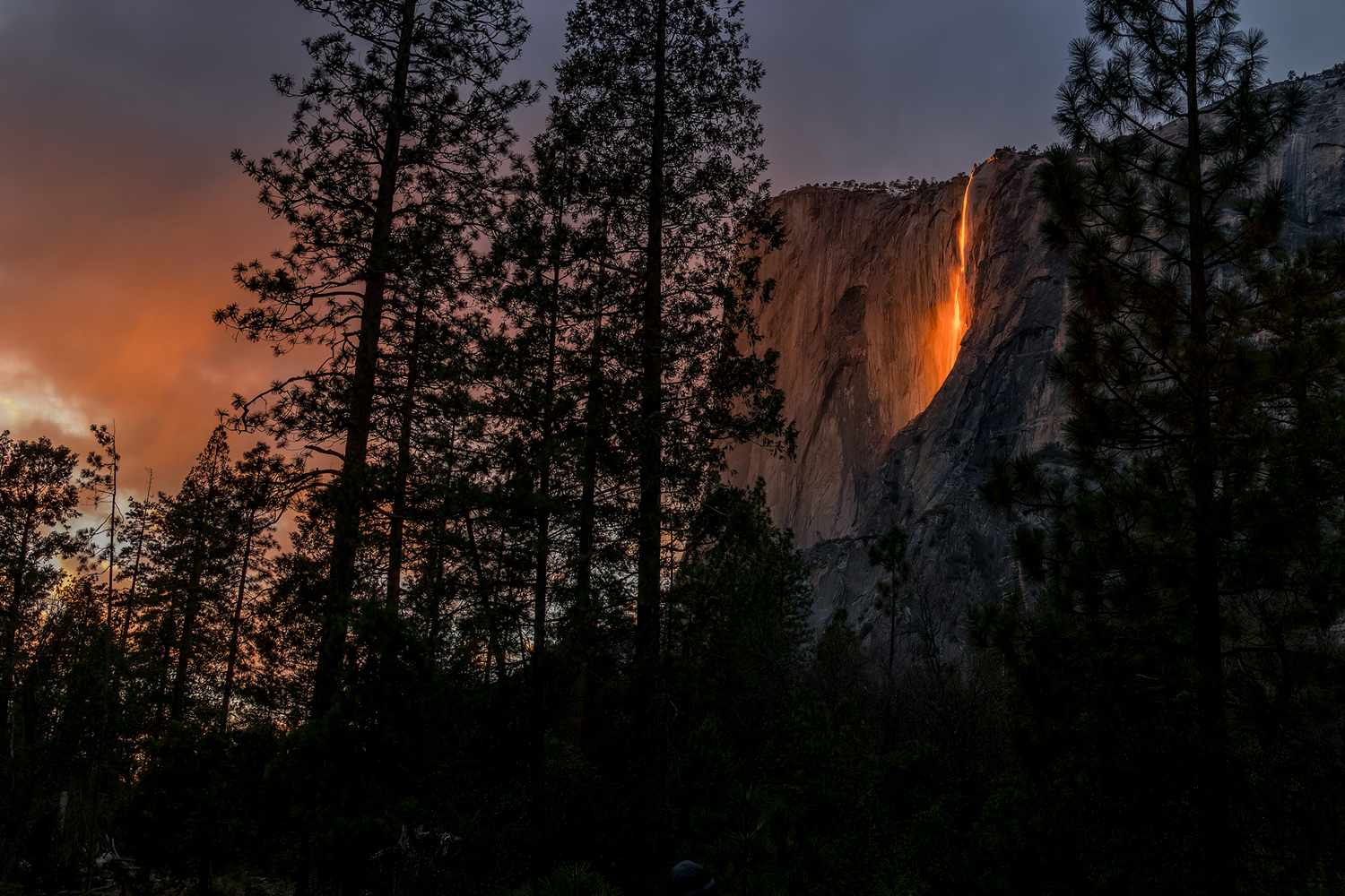Sadly, you can’t see a glowing Horsetail Fall throughout the year. Mid to late February, when the sun is perfectly positioned to cast its tangerine glow, is the time to spy it. “President’s Day weekend sits in the middle of the peak period,” says Pfaller, noting that roughly Feb. 10 to 27 is your ideal timeframe, give or take. “I’ve seen it on the tail ends of the ideal viewing period, and you can still technically see it, but the contrast is not as pronounced.”