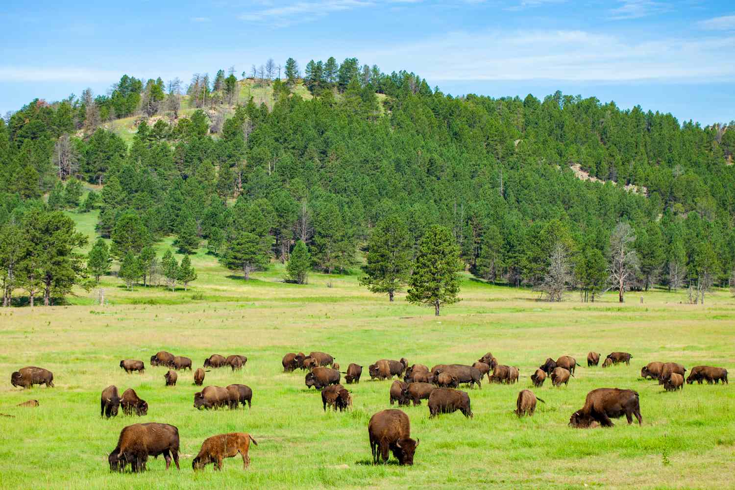 “The fall colors in this area are a mixture of gold and yellow, and they are absolutely beautiful,” she says, noting that you’ll see wild sunflowers as well as the aspen and birch trees changing colors. Following the snowy winter—park roads can temporarily close depending on the weather—spring emerges with a refreshing vibrancy. “I love the spring because it is a time when new babies are being born. Oftentimes, you’ll be able to see baby buffalo that have been born within minutes and are up and running around,” she says. “The spring is very green and lush and gorgeous.” Spring is also when you’ll see the blooming purple pasque, South Dakota’s state flower.