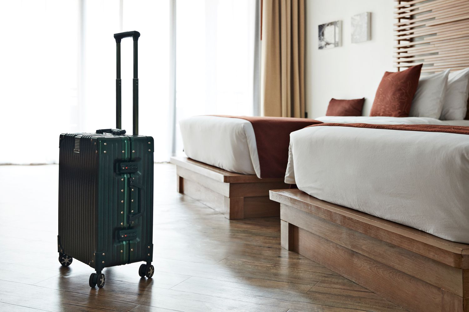 “Whenever I check into a hotel, I immediately put my luggage either in the bathroom, the entryway, or any space away from the bed and not on the carpet,” says Mansel. “This way, my belongings are far enough away from any furniture where bed bugs usually reside—and I significantly lower my chances of bringing them home.” She also recommends leaving a note for housekeeping on top of the suitcase, asking them to leave the bag in the tub: “I’ve occasionally had my bags moved and placed on luggage racks—which can also be home to bed bugs—so the note ensures my luggage stays where I left it.”